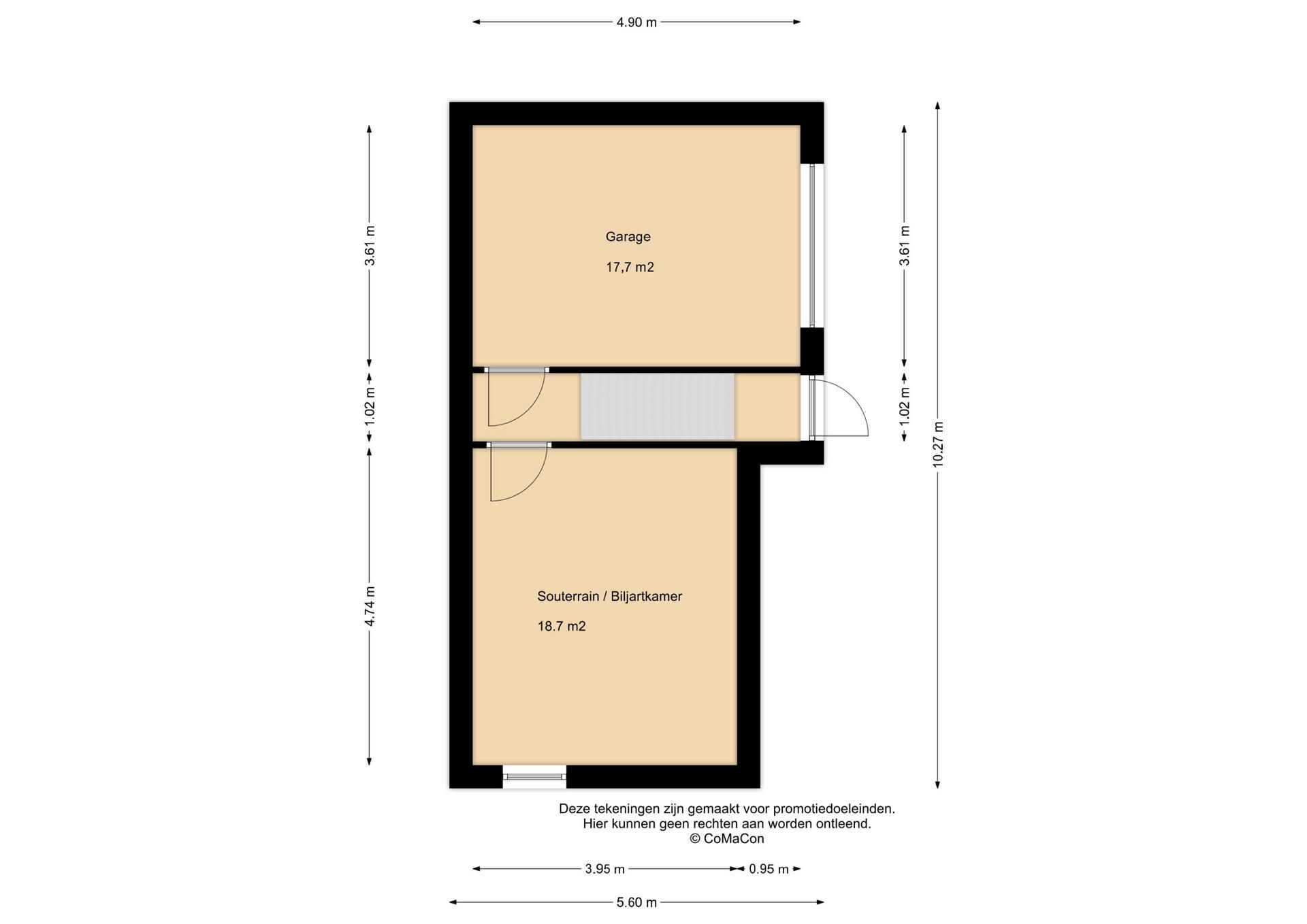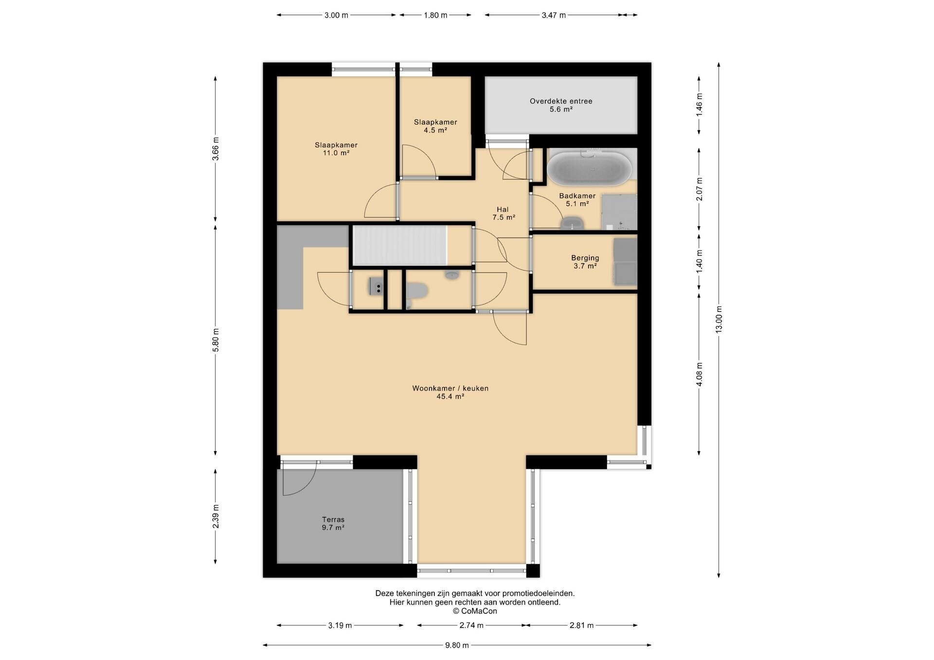 - 20 m² (4,00 meter diep en 5,00 meter breed)